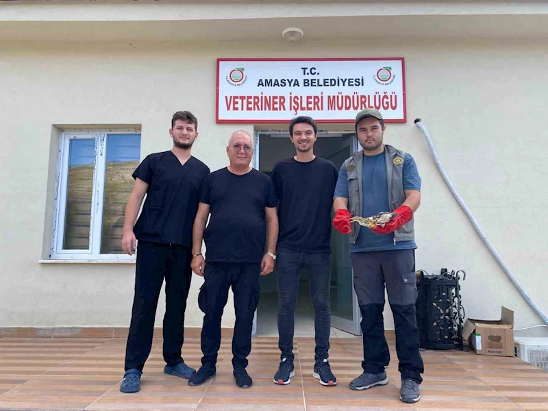 Merkeze bağlı Yıldızköy'de bitkin haldeki kuşu fark eden Amasya Belediye personeli Salih Karabıyık, tutup beslemeye çalıştıktan sonra belediyenin veteriner işleri müdürlüğüne götürdü. İki ayağının da kırık olduğu tespit edilen kuşun nesli tükenmekte tehlikesi altında olan balaban kuşu olduğu belirlendi. Doğa Koruma ve Milli Parklar Amasya Şubesi ekiplerine teslim edilerek koruma altına alınan kuşun yapılacak tedavinin ardından doğal ortamına salınması planlandı.