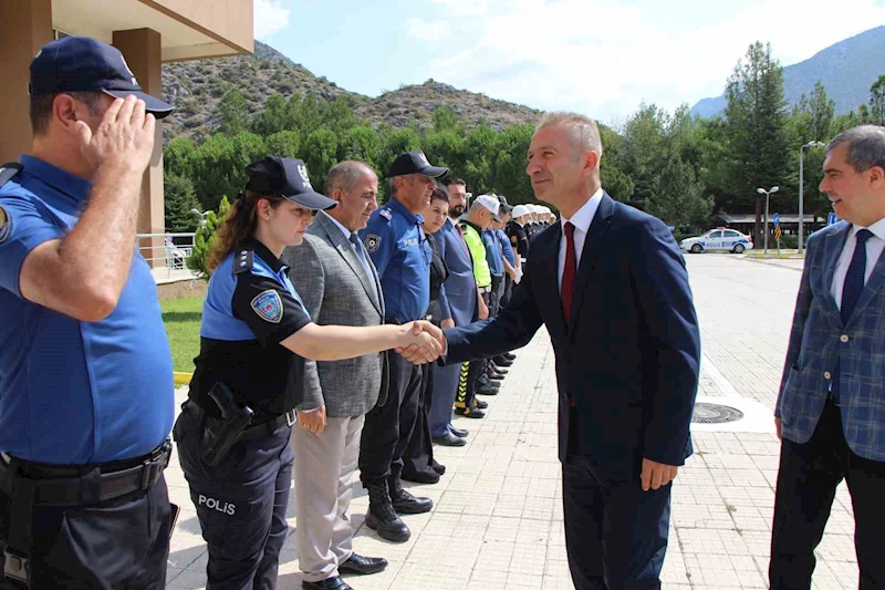 Polis mangasını selamlayan Saraç, birim yöneticileriyle de tanıştı.