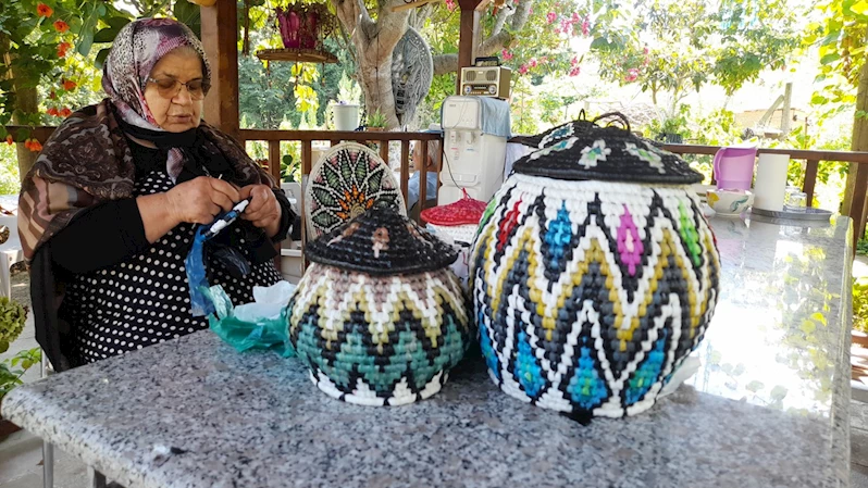 Sinop'ta yaşayan Ayşe Öztürk, atık poşetleri değerlendiriyor. 76 yaşındaki Ayşe Öztürk, alışveriş poşetlerini çöpe atmıyor, onları ilmek ilmek örerek sepet, nihale, tablo, çamaşırlık gibi kullanışlı eşyalara dönüştürüyor.