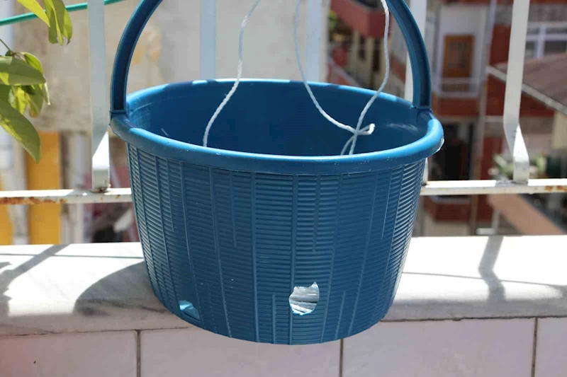 Rize'de çamaşır asmak için balkona çıkan vatandaş, sepetindeki deliği ve yerde bulunan mermi çekirdeğini görünce şoke oldu.