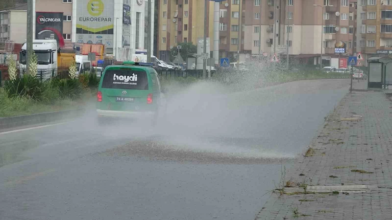 Bartın'da sabah erken saatlerde başlayan yağış nedeniyle yollar gölete döndü. Sürücüler su biriken yollarda zor anlar yaşadı.