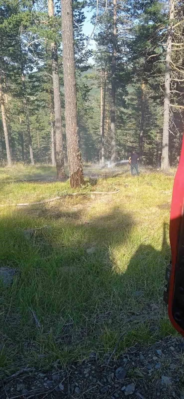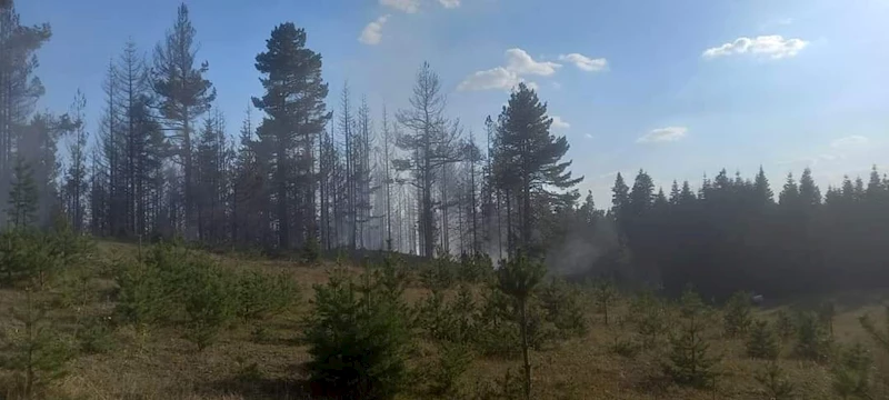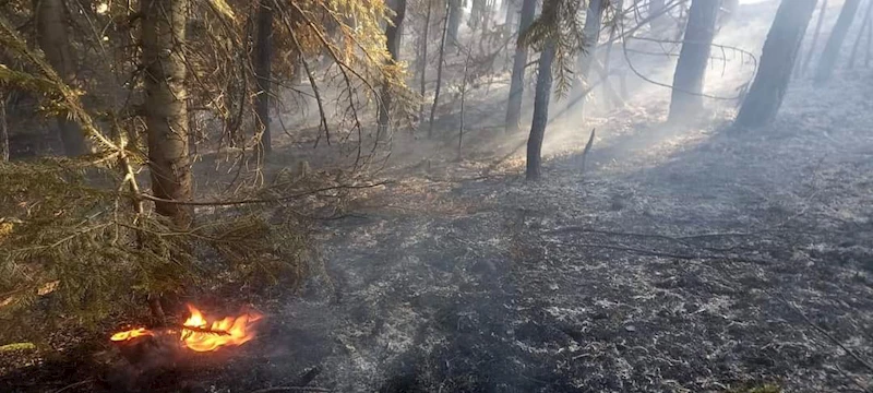 Yangında bir hektarlık alan zarar görürken ekiplerin soğutma çalışmaları devam ediyor.