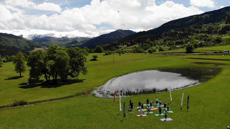 Ardanuç'un Tosunlu Köyünde bulunan Usot Gölü'ne çıkanlar doğanın ve güzel havanın tadını çıkartırken, gölün son konukları yoga tutkunları oldu.