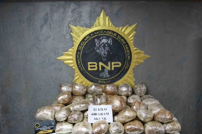 Edinilen bilgiye göre, Bolu Emniyet Müdürlüğü Narkotik Suçlarla Mücadele Şube Müdürlüğü ekipleri, yaptıkları istihbarat çalışması sonucu doğu illerinden İstanbul'a uyuşturucu madde sevkiyatı yapan bir kamyonete operasyon yaptı. Narkotik ekipleri, TEM Otoyolu'nun Bolu geçişinde ev eşyası yüklü kamyoneti durdurdu. Narkotik köpeği 'Pako' eşliğinde kamyonette yapılan aramalarda, çekyatların içine gizlenmiş 77 parça halinde 52 kilo 600 gram skunk maddesi ele geçirildi. Kamyonette bulunan M.G. ve İ.S. gözaltına alındı. Emniyetteki sorguları sonrası adliyeye sevk edilen M.G. tutuklanırken, İ.S. adli kontrol şartıyla serbest bırakıldı.