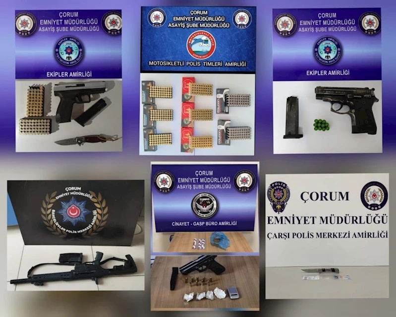 Çorum'da polis ve jandarma ekipleri, son bir haftada gerçekleştirdikleri denetimlerde 48 bin 609 kişinin GBT'si sorgulandı, çeşitli suçlardan aranan 26 kişi de cezaevine gönderildi ve çok sayıda silah ile uyuşturucu madde ele geçirildi.