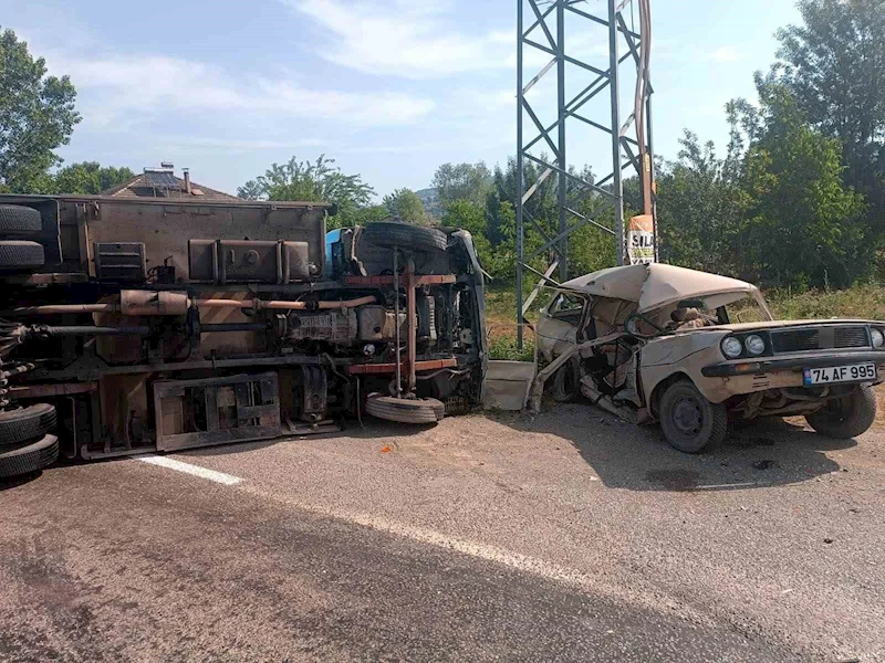 Edinilen bilgiye göre, Bartın'dan Kozcağız istikametine seyir eden G.G.(44), idaresindeki 67 AU 885 plakalı çöp kamyonu, Budakdüzü yol ayrımı mevkiinde İ.B. (23) idaresindeki 74 AF 995 plakalı otomobile çarptı. Çarpışmanın etkisi ile kamyon devrilirken, otomobil ise kullanılamaz hale geldi. Kazayı görenlerin haber vermesinin ardından olay yerine 112 acil sağlık ve jandarma ekipleri sevk edildi. Yaralanan otomobil sürücüsü ambulansla Bartın Devlet Hastanesine kaldırılırken, çöp kamyonu sürücüsü kazadan yara bile almadan kurtuldu.