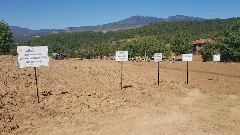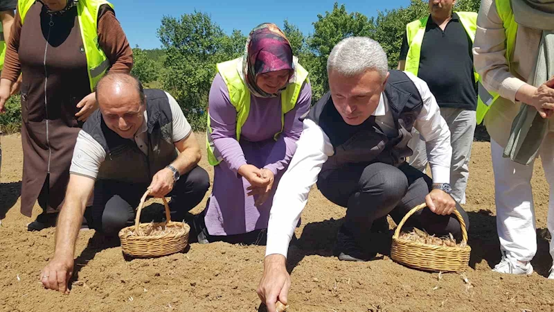 Konuşmaların ardından protokol üyeleri ve üreticiler safran soğanını toprakla buluşturdu.