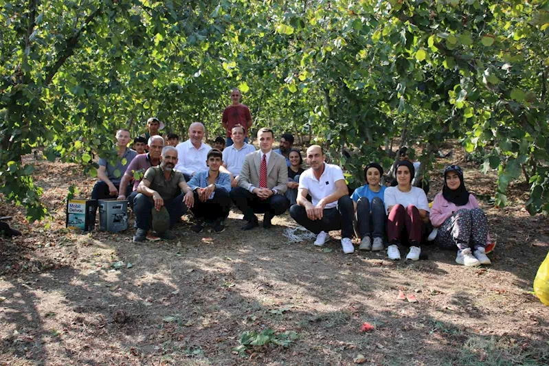 Fındık hasadı yapan işçilerle tarlada sohbet ettiler
