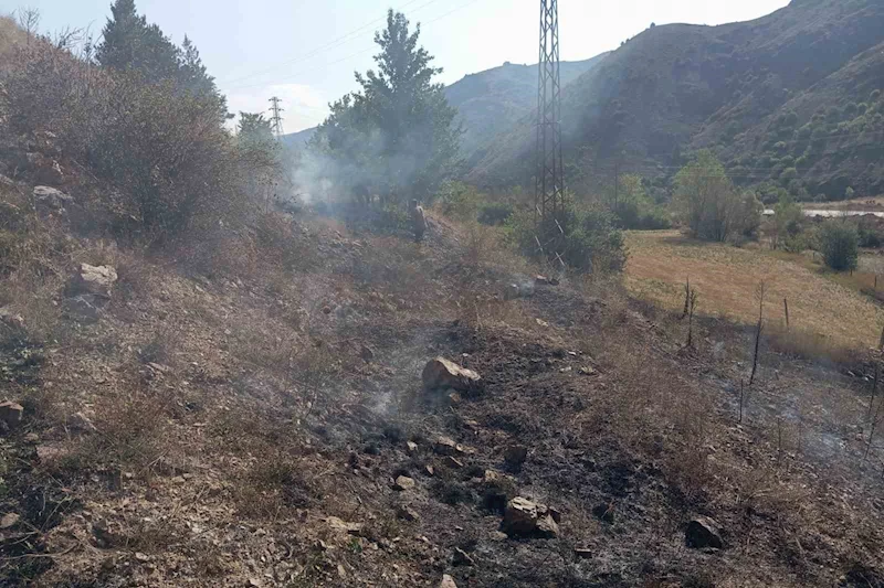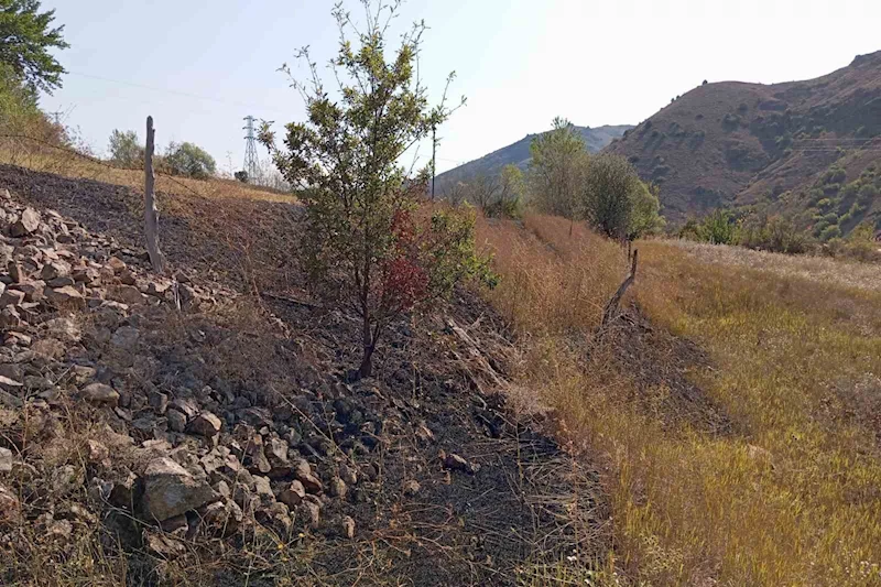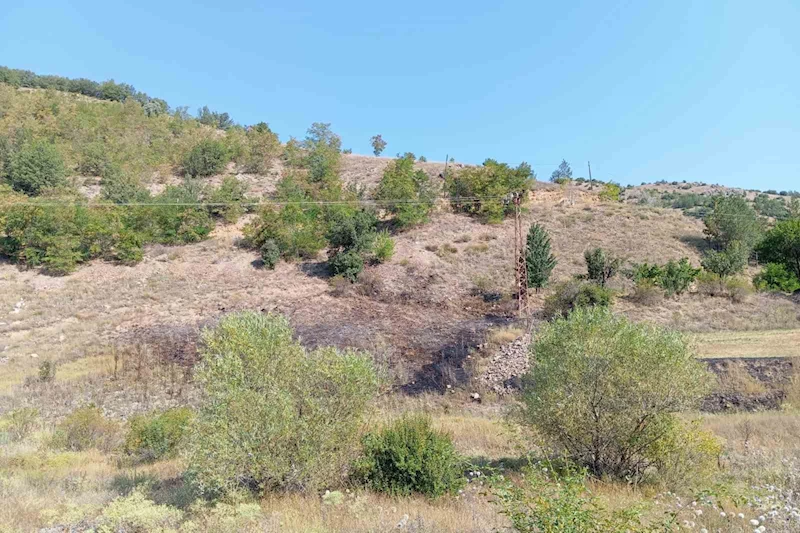Jandarma ekiplerinin de katkı sağladığı ve çalılık, ağaçlık alana ulaşmadan Özel İdare ekipleri tarafından söndürülen yangında İtfaiye ekipleri soğutma çalışması yaptı.
