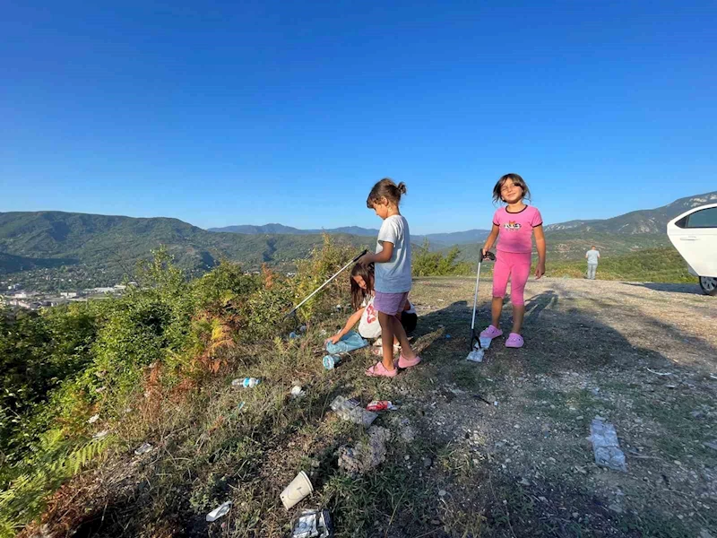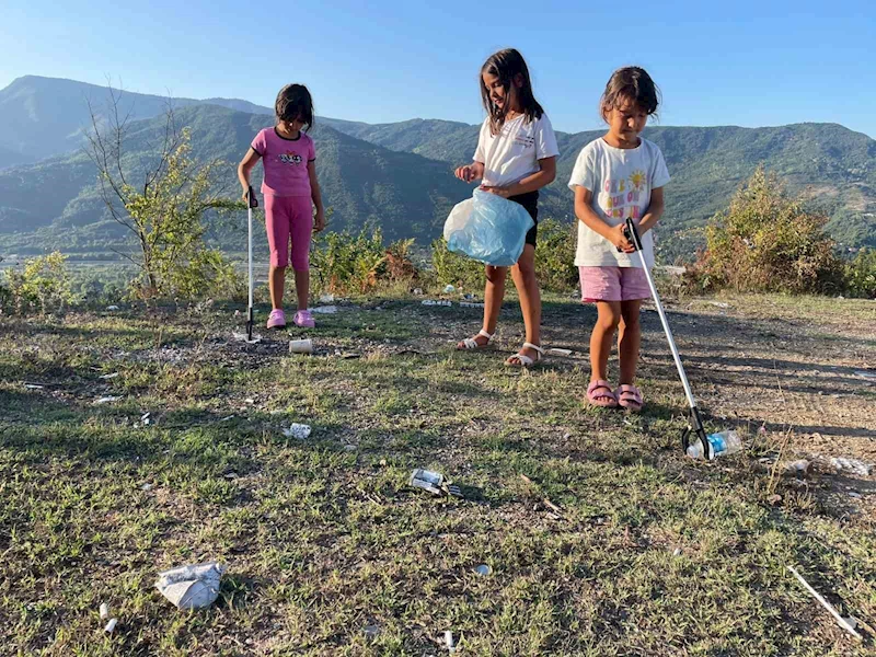 Yaz tatili için Almanya'dan memleketi Karabük'e gelen gurbetçi aile her yıl geleneksel hale getirdikleri çevre temizliğini sürdürdü.