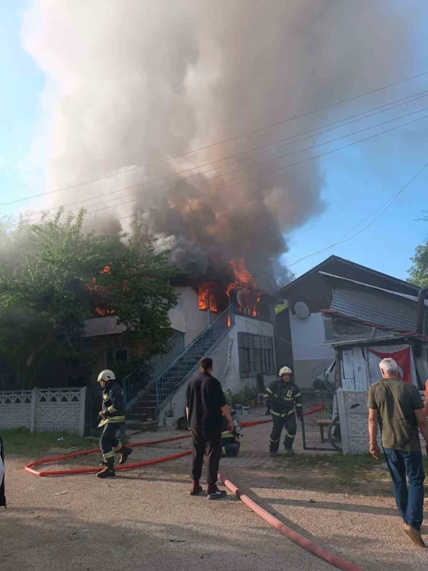 Bolu Dağı mevkiinde bulunan Elmalık köyünde iki katlı beton evin üst katında çıkan yangın, üst kat ve çatıda hasara neden oldu.