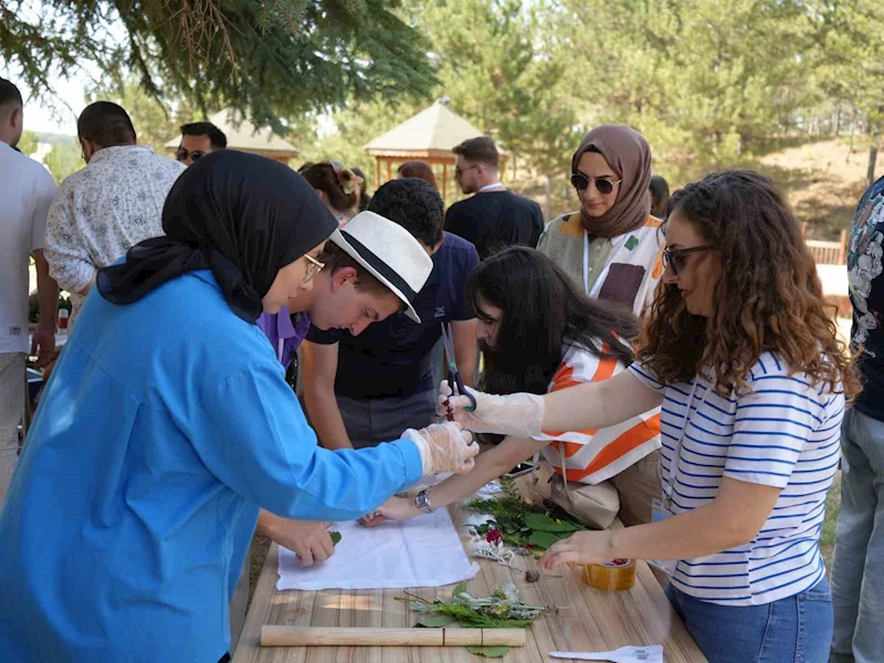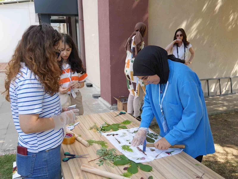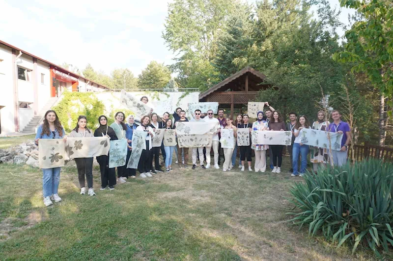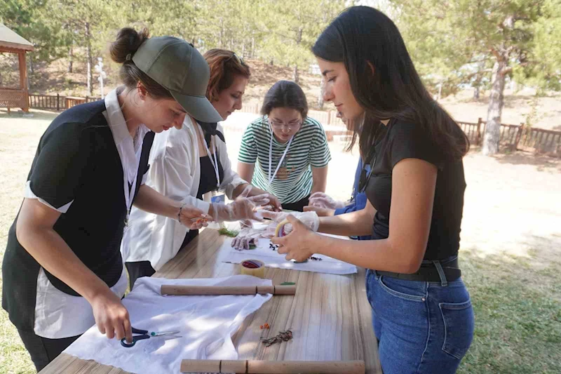 Kastamonu'da yürütülen "İklimin Geleceği: Geleceğin İklimi" projesinde yer alan katılımcılar, iklim değişikliğine farkındalık oluşturmak amacı ile topladıkları yaprak ya da çiçek gibi bitkilerle kumaşlara baskı yaptı.
