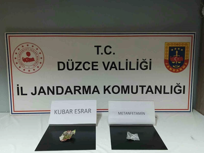 Düzce'de uyuşturucu ile mücadele çerçevesinde İl Jandarma Komutanlığı'na bağlı ekipler çalışmalarını sürdürüyor. Bu çerçevede yürütülen önleyici faaliyetler çerçevesinde 16 gram bonzai, 7 gram metamfetamin, 4 gram kubar esrar, 2 adet lyrica hap, 1 adet hassas terazi ve 4 adet uyuşturucu kullanma aparatı ele geçirdi.