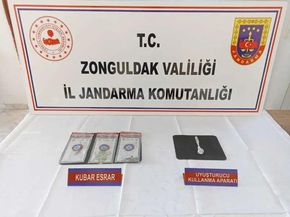 Edinilen bilgiye göre Zonguldak İl Jandarma Komutanlığı ekiplerince, Çaycuma ilçesinde adli makamlardan alınan arama kararına istinaden bir şüpheliye ait ait ev ve eklentilerde arama yapıldı. Aramada 8 gram kubar esrar ve 1 adet uyuşturucu kullanma aparatı ele geçirildi.