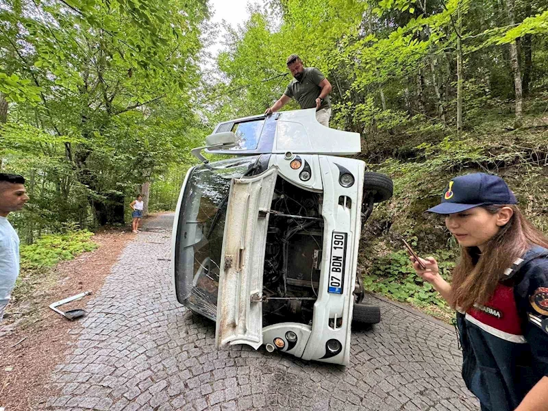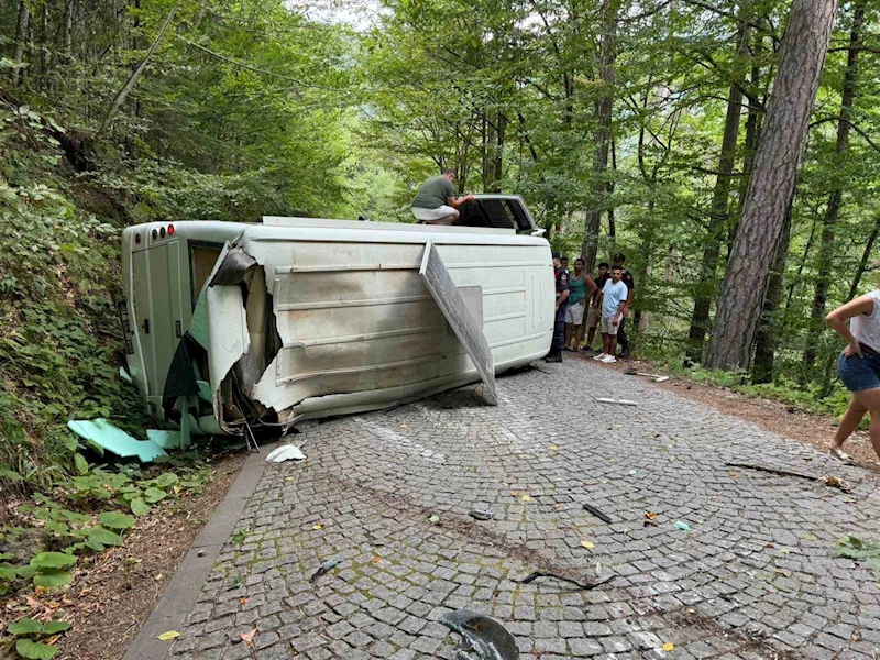 Kamp için Yedigöller’e gelen çiftin karavanı devrildi: 2 yaralı