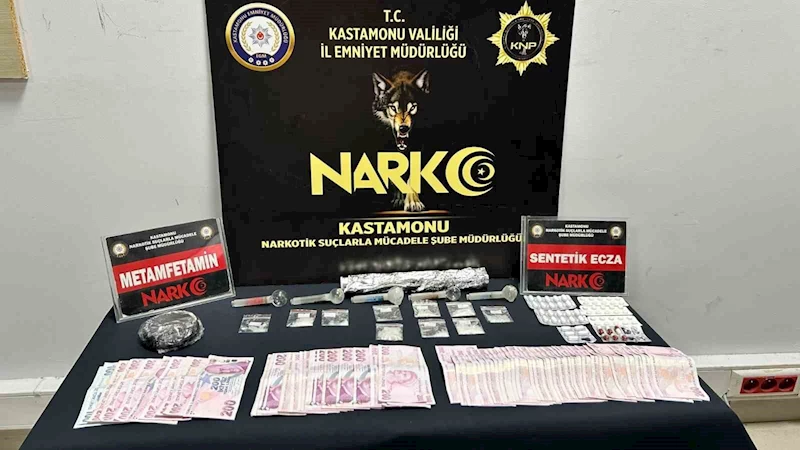Edinilen bilgiye göre, Kastamonu İl Emniyet Müdürlüğü Narkotik Suçlarla Mücadele Şube Müdürlüğü ekiplerince uyuşturucu madde kullanan ve satan şahısların yakalanmasına yönelik yapılan çalışmalar çerçevesinde, tespiti yapılan 3 şahsın üstlerinde ve evlerinde arama yapıldı. Aramalarda satışa hazır vaziyette 12,98 gram metamfetamin, 5 adet uyuşturucu içiminde kullanılan cam düzenek, 1 adet hassas terazi, 61 adet sentetik ecza hapı, 0,22 gram kannabinoid, suçtan elde edildiği değerlendirilen 14 bin TL nakit para ele geçirildi.