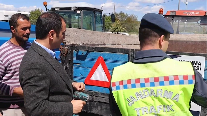 Köse’de ’Reflektör Tak, Görünür Ol Projesi’ kapsamında traktör sürücülerine reflektör dağıtıldı