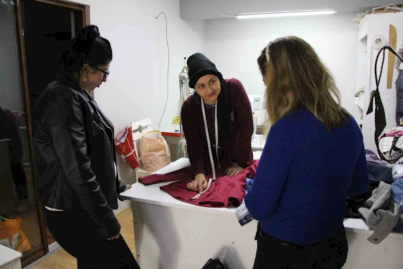Üçler Mahallesi'nde 4 yıl önce terzi dükkanı açan evli ve 2 çocuk annesi Zeynep Yenice, korona virüs salgını nedeniyle işyerinin kepengini indirip üretimini evinde sürdürmek zorunda kaldı. Şanssız durum karşısında borçları da artınca çareyi mikro kredi uygulamasından faydalanmakta buldu. 5 bin TL'lik krediyle bir miktar kumaş alarak üretim yapıp sattı. Üretimin devamı için aşırı kilo alan eşinin kullanamadığı kıyafetleri gözüne kestirdi. O gömlek ve pantolonlar çocuk elbiseleri, kalemlik ve el çantalarına dönüştürüldü. Bu durumu gören komşularından aldığı eskimiş elbiselerin parçalarıyla da yeni elbiseler dikip satarak kazancını artırmaya çalıştı.
