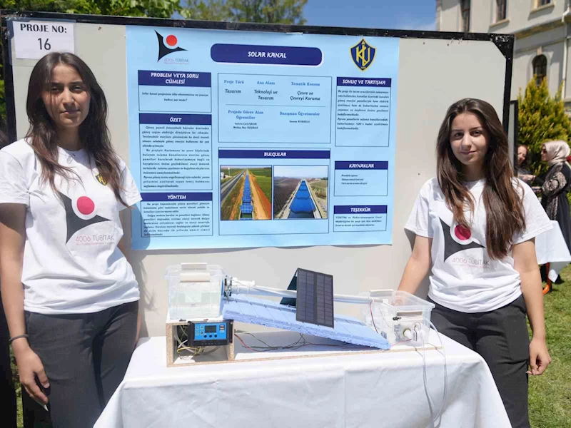 "Solar Kanal" projesini geliştiren öğrencilerden Selcen Çalışkan, "Ürettiğimiz enerji ile tarım alanlarını sulamayı hedefliyoruz. Güneş panellerinin ülkemizde yaygınlaşmasından dolayı bu fikir bizlerde oluştu. Bizler de hangi sektörlerde bunu kullanabiliriz diye düşündük ve bu fikir ortaya çıktı. Yaklaşık 5 aydan fazladır bu projenin hazırlanması için çalışıyoruz. Güneş panelleriyle su kanalının üzerini kapatarak hem kanaldaki yosunlaşmayı engelliyoruz. Ayrıca kanaldaki buharlaşmayı da önlüyoruz. Üretilen enerji ile kanalda suyun devir daim yapmasını da sağlıyoruz. Sadece kendi enerjisiyle bunları yapıyoruz" diye konuştu.
