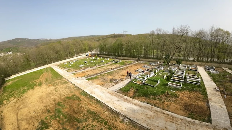 Düzce Belediyesi Mezarlıklar Müdürlüğü, Bahçeşehir Mezarlığı'nda parsel sınırları ile yolların yenilenmesi için çalışma başlatıldı.