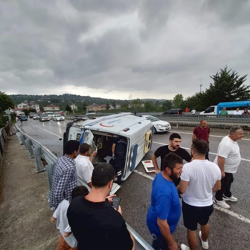 Ordu'da, yağmur nedeniyle kayganlaşan yolda kontrolden çıkan ambulansın yan yatması sonucu meydana gelen trafik kazasında 4 kişi yaralandı.