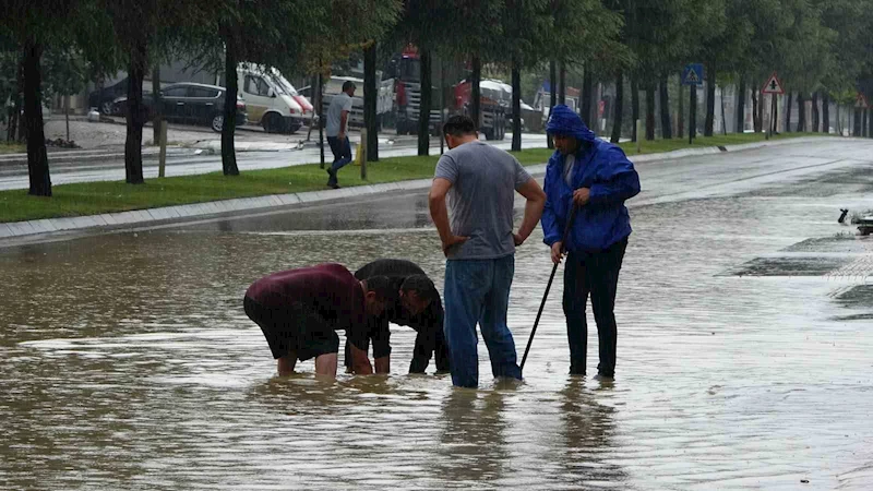 Vatandaşlar, birden etkili olan sağanak sonrası yolda su birikintisinin olduğunu, yağışın devam etmesiyle birlikte yolun tamamen ulaşıma kapatıldığını söylediler.