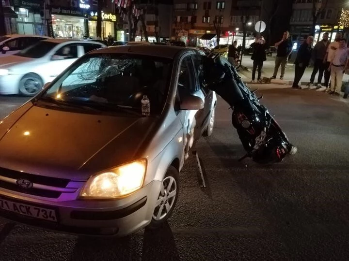 Otomobile çarpan motosikletin sürücüsü yaralandı