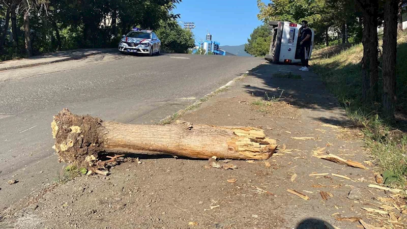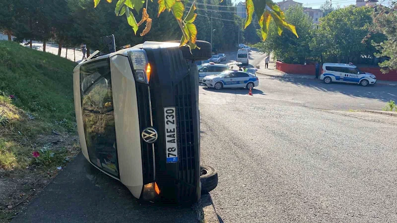 Karabük'te polis otosuyla çarpıştıktan sonra devrilen hafif ticari aracın sürücüsü yaralandı.