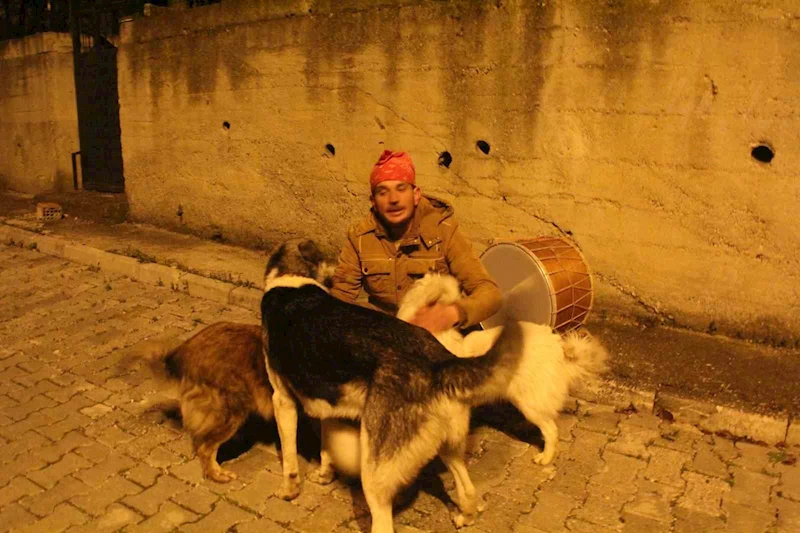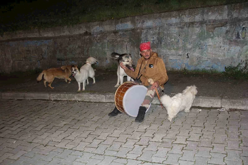 Havzalı Ramazan davulcusu Kemal Akaydın'ın insanları sahura sokak hayvanları ile birlikte kaldırıyor.