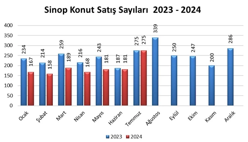 Sinop'ta Temmuz ayında 275 konut satılırken, konut satışının bir önceki yılın aynı ayına göre değişmediği görüldü.