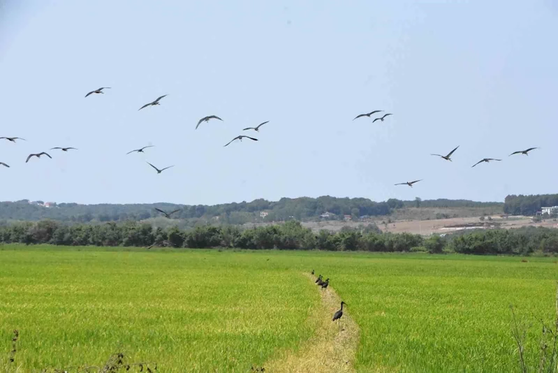Türkiye'de nesli tükenmekte olan kuş türleri arasında yer alan çeltikçi kuşlar, Sinop'ta objektiflere yansıdı. Bir süre çeltik tarlasında avlanan kuşlar daha sonra uçarak bölgeden uzaklaştı. Vatandaşlar ilk kez karşılaştığı çeltikçi kuşları cep telefonları ile görüntüledi.