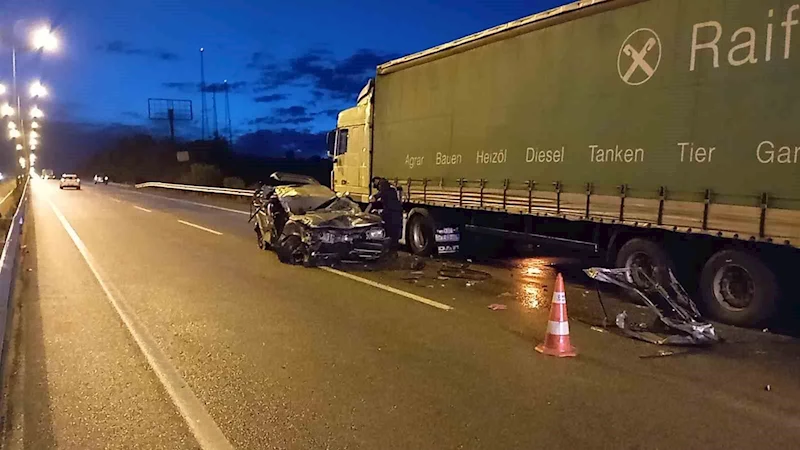 Tıra çarpan otomobil hurdaya döndü: 1 yaralı