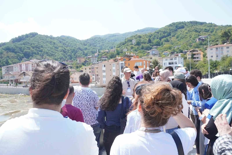 Kastamonu'da yürütülen "İklimin Geleceği: Geleceğin İklimi 2" projesi çerçevesinde Türkiye'nin dört bir yanından gelen üniversite öğrencileri, sel felaketinin yaşandığı Bozkurt ilçesinde incelemelerde bulundu.
