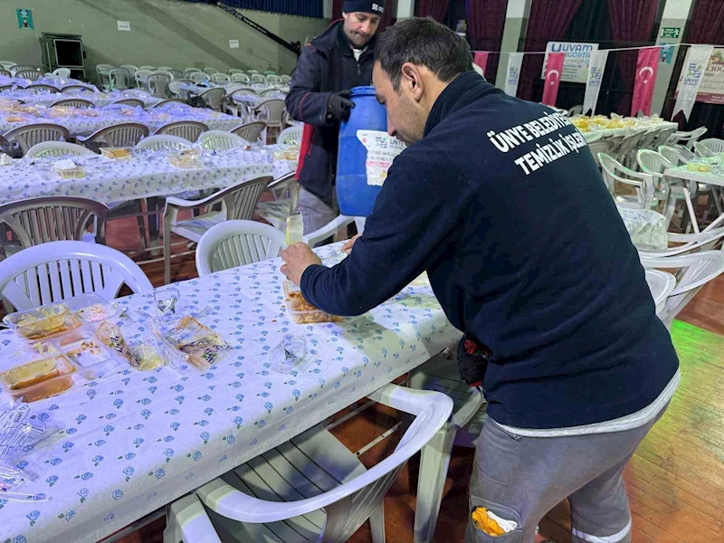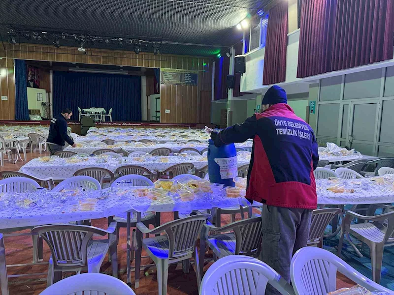 Ünye ilçesinde kurulan gönül sofrasında insanlar bir araya geliyor. Ünye Belediyesi aşevinde hazırlanan yemekler iftar sofralarında ikram ediliyor.