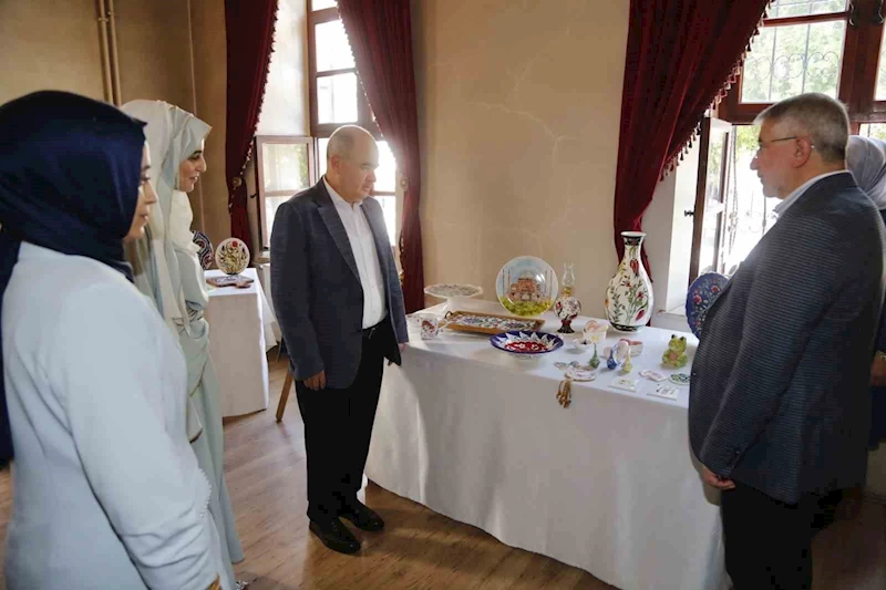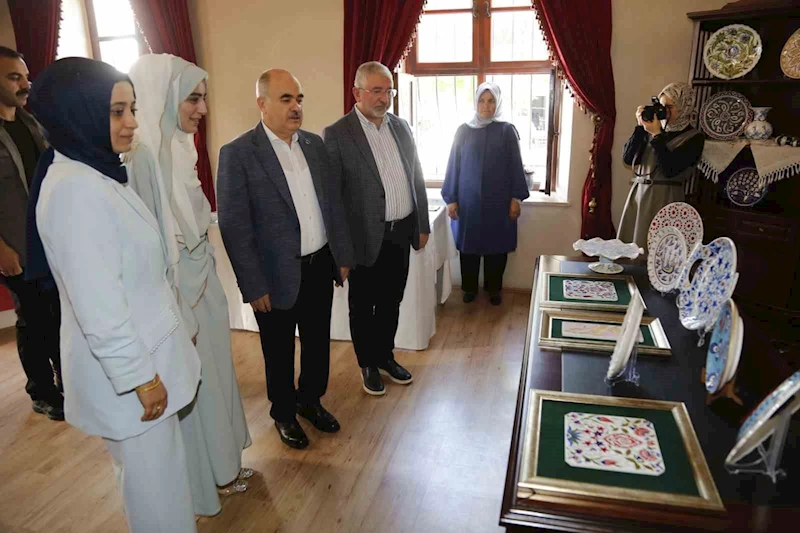 Konuşmaların ardından çini sergisinin açılışı gerçekleştirildi. Sergiyi gezen Vali Dağlı, Belediye Başkanı Dr. Halil İbrahim Aşgın, İl Kültür ve Turizm Müdür Vekili Osman Keser ve davetliler eserler hakkında bilgi aldı.