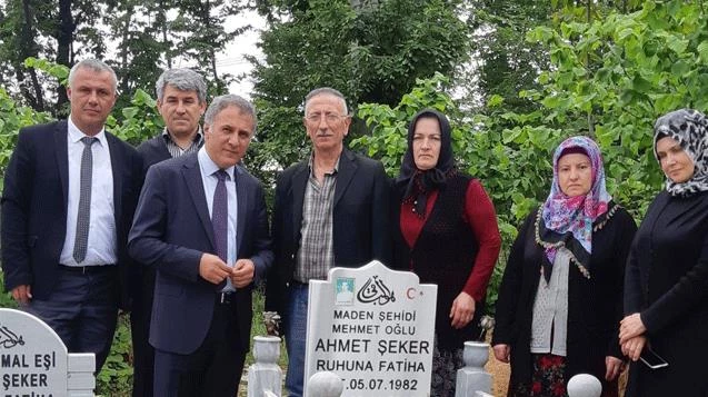 Tüm-İş Konfederasyonu Genel Başkanı Mahmut Şahin, 1 Mayıs öncesi maden kazasında şehit düşen Ahmet Şeker'in mezarını ziyaret etti.