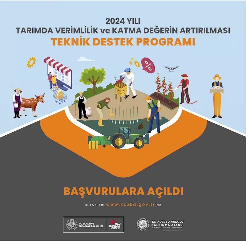 2024 Yılı Tarımda Verimlilik ve Katma Değerin Artırılması Teknik Destek Programı kapsamında Kuzey Anadolu Kalkınma Ajansı (KUZKA) tarafından sağlanacak destek ile tarımsal üretimde kurumsal alt yapının güçlendirilmesi ve tarımsal örgütlenmenin geliştirilmesi, TR82 Bölgesi’ndeki üretici örgütlerin pazarlama ve tanıtım alanlarında güçlendirilmesi ve sürdürülebilir tarımsal üretim ve sanayi yönetiminin sağlanması amaçlanıyor. TR82 Bölge illeri Kastamonu, Çankırı ve Sinop’ta faaliyet göstermekte olan kurum ve kuruluşlara yönelik uygulanacak program kapsamında yapılacak proje başvuruları 2 Mayıs 2024 tarihi itibariyle kabul edilecek. Tarımda Verimlilik ve Katma Değerin Artırılması Sonuç Odaklı Programı’nın özel amaçları çerçevesinde hazırlanan programa potansiyel başvuru sahiplerini proje hazırlamaya çağıran KUZKA, 2024 Yılı Tarımda Verimlilik ve Katma Değerin Artırılması Teknik Destek Programı ile tarım sektörüne toplamda 2 milyon TL büyüklüğünde destek sağlayacak.