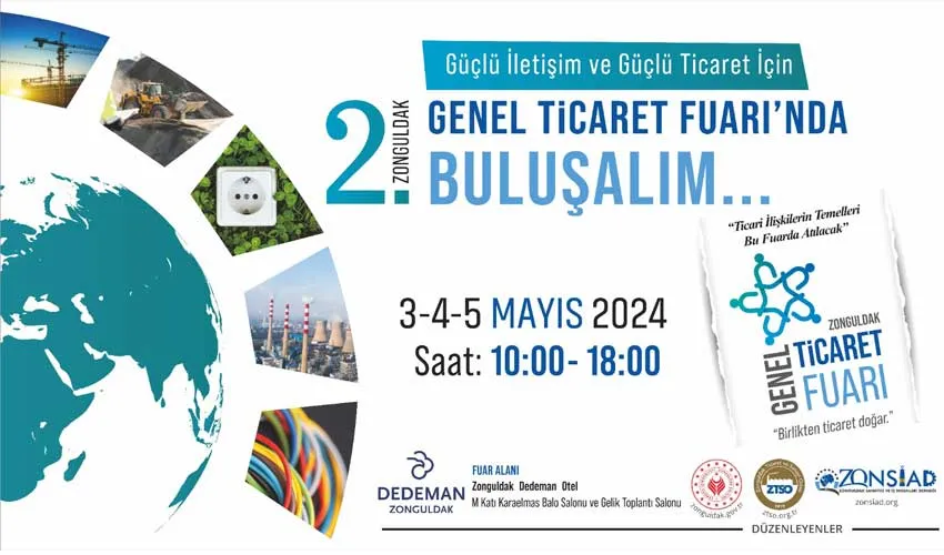 Zonguldak Sanayici ve İş İnsanları Derneği (ZONSİAD), Zonguldak Ticaret ve Sanayi Odası (ZTSO) ve Zonguldak Valiliği tarafından geçtiğimiz yıl ilki düzenlenen Zonguldak Genel Ticaret Günleri Fuarı’nın 2.’si bu yıl 3-4-5 Mayıs 2024 tarihlerinde Zonguldak Dedeman Otel’de gerçekleşecek.