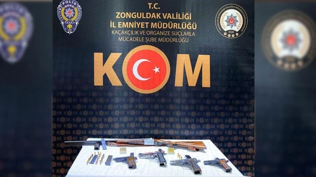 Edinilen bilgiye göre Zonguldak Cumhuriyet Başsavcılığı koordinesinde KOM Şube Müdürlüğü ekiplerince merkez ilçe ve Kozlu ilçesinde ruhsatsız silah ticaretine yönelik operasyon düzenlendi. Soruşturma süresi boyunca fiziki ve teknik takibi sürdüren ekipler 9 şüpheli şahsa yönelik operasyon düzenledi. Operasyonda gerçekleştirilen aramalar sonucunda 5 adet ruhsatsız tabanca, 117 adet fişek, 1 adet tüfek, 1 det kuru sıkı silah ele geçirildi. Ele geçirilen silahla el konulurken şüphelilerin sorgusu sürüyor.