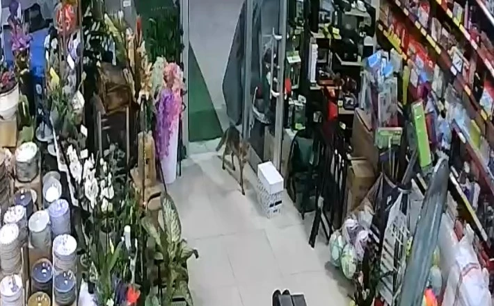 Dükkana giren tilkinin dükkan etrafında dolaşmasının ardından işletmeye girdiği anlar güvenlik kamerasına an be an yansıdı.