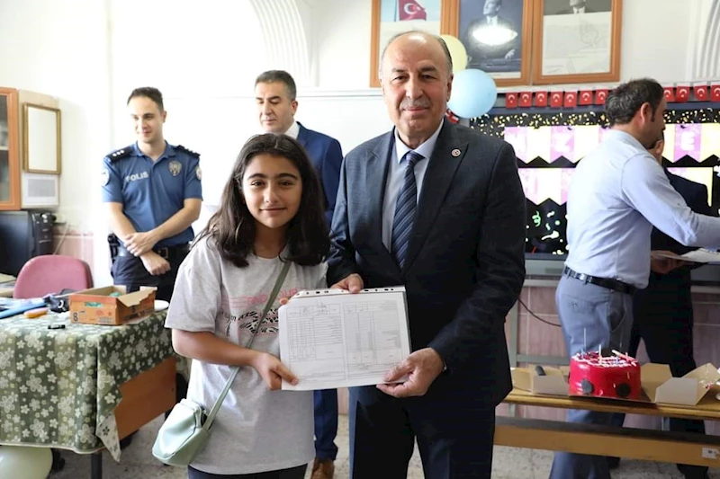 Karne töreninde kısa bir konuşma yapan Belediye Başkanı Şerif Arslan, "Bir eğitim öğretim yıla daha geride kaldı, dereceye giren öğrencilerimizi kutluyorum. Biz Belediye olarak gençlerimizin her zaman yanlarındayız, her zaman destekçileri olmaya devam edeceğiz. Rabbim tüm evlatlarımızı vatanına, bayrağına, ezanına bağlı bir birey olarak yetiştiğini, vatanına milletine güzel hizmet etmelerini görmeyi bizlere nasip etsin. Çocuklarımız bizler için kıymetli değerli onların bizlerde her zaman ayrıdır" şeklinde konuştu.
