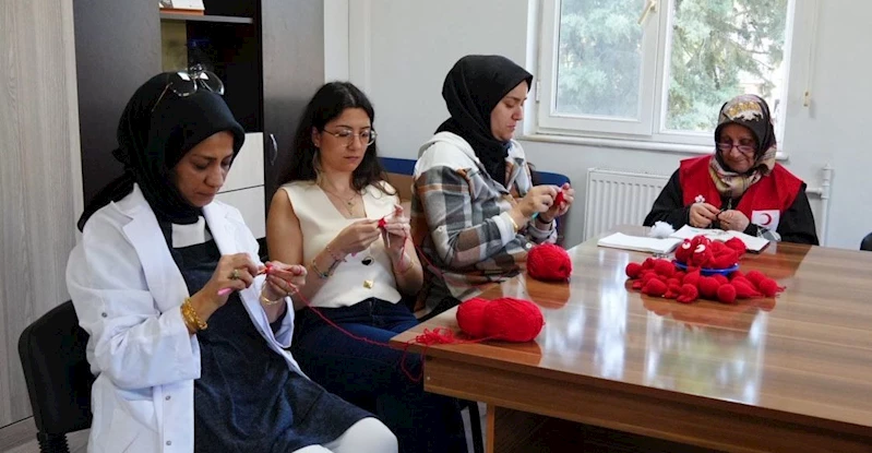 Türk Kızılayı Düzce Şubesi Kadın Kolları Yönetimi, Düzce Belediyesi Meslek Edindirme Kursları çatısı altında, kursiyerlerin de desteği ile kan damlası anahtarlık üretiyor.