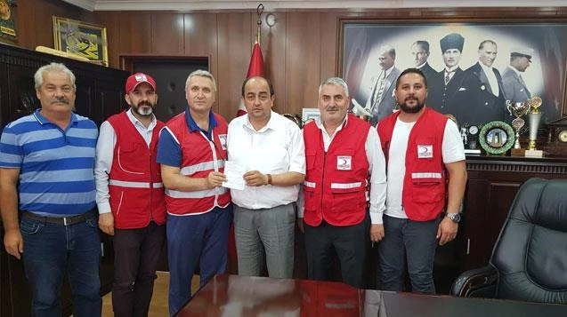 Türk Kızılay Derneği Kdz Ereğli Şube Başkanı Yaşar Ciğer ile Başkan Yardımcısı Kürşat Yağız ve yönetim kurulu üyeleri Ali Kocatürk ile Kenan Yılmaz Gülüç Belediye Başkanı Gökhan Demirtaş ile İş Adamı Engin Aygün'ü ziyaret ederek yaptıkları kurban bağışlarını kabul etti. Ziyarette konuşan Kızılay Derneği Kdz. Ereğli Şube Başkanı Yaşar Ciğer Başkan Demirtaş'ın Kızılay'a kurban bağışında bulunarak hem öncü olduğunu hem de güzle bir örnek oluşturduğunu ifade etti. Ciğer konuşmasında Başkan Demirtaş'a yaptığı bağıştan dolayı teşekkür etti. Gülüç Belediye Başkanı Gökhan Demirtaş ise geçmişi çok eskilere dayanan Kızılay'ın Türkiye genelinde olduğu gibi dünyada bir çok ülkede de mazlumların her zaman yardımına koştuğunu belirterek, herkesi Kızılay'a kurban bağışında bulunmaya davet etti. Ziyaretten dolayı Kızılay Derneği Kdz. Ereğli Şube Başkanı Yaşar Ciğer ile ekibine teşekkür eden Başkan Demirtaş Kızılay'ın her zaman yanında olacaklarını söyledi. Demirtaş'ın ardından Ahos Otel Yönetim Kurulu Başkanı İş Adamı Engin Aygün'ü ziyaret eden Kızılay'ı Derneği Başkanı Ciğer ile ekibi yapılan kurban bağışını teslim aldı. Kızılay Derneği Kdz. Ereğli Şube Başkanı Yaşar Ciğer örnek davranışından dolayı iş adamı Engin Aygün'e teşekkür etti.
