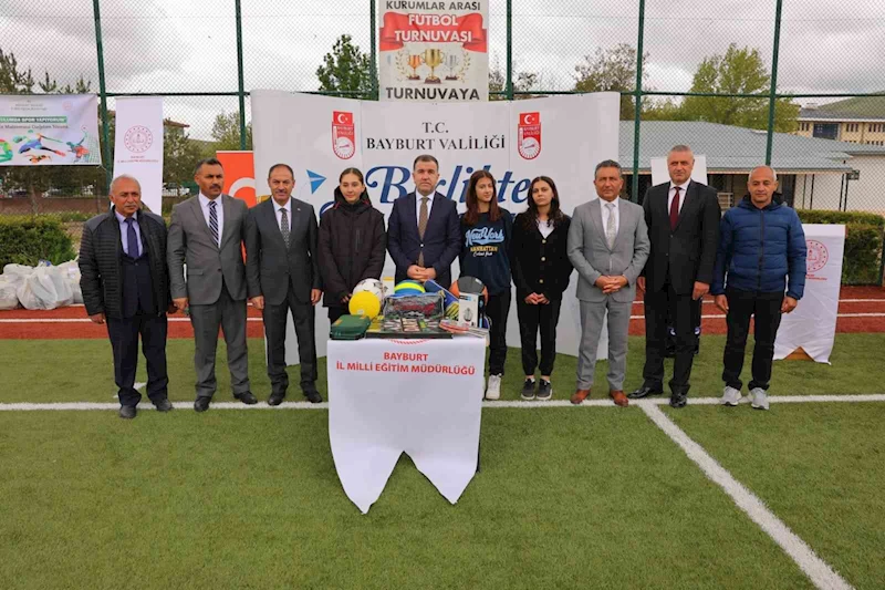 Bayburt’ta ‘Okulumda Spor Yapıyorum’ projesi kapsamında ilköğretim ve ortaokul öğrencilerine düzenlenen törenle spor malzemeleri dağıtıldı.