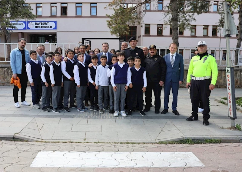 Bayburt Valisi Mustafa Eldivan, ‘Karayolu Trafik Haftası’ çerçevesinde Cumhuriyet Caddesi Bayburt Ortaokulu önünde bulunan yaya geçiş noktasında düzenlenen etkinliğe katıldı.