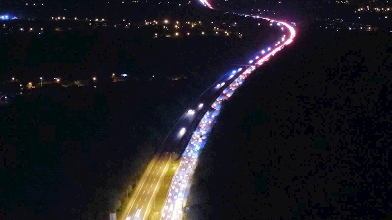 Anadolu Otoyolu Düzce geçişi İstanbul istikametinde dönüş yoğunluğu artarak devam ediyor. Trafik durma noktasına gelirken trafik ekipleri de güzergahta kaza olmaması için denetimlerini sürdürüyor. Karayolları ekiplerince yapılan kontrollerde ise 12 Nisan Cuma saat 12.00 itibari ile İstanbul istikametine dönüş yoğunluğu başladı. Düzce’den bayram dönüş yoğunluğunda ilk günde 96 bin 711 araç geçil yaparken, sayının pazar gününe kadar 500 bine yaklaşması bekleniyor. Düzce’de ki bayram yoğunluğu ise havadan dron ile görüntülendi.