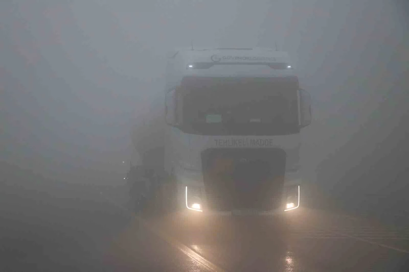 Bolu Dağı’nda etkili olan yağmur ve yoğun sis sebebiyle görüş mesafesi yer yer 10 metreye kadar düştü.