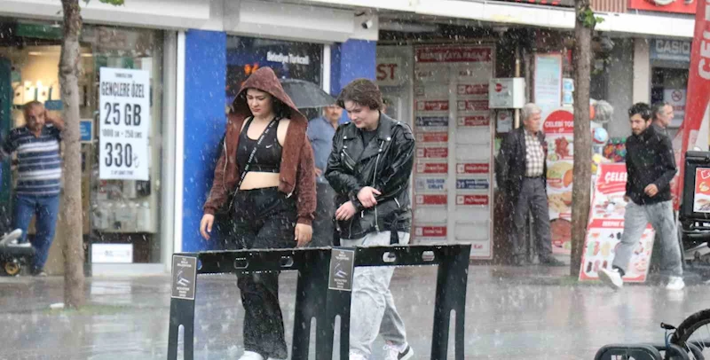 Bolu’da öğle saatlerinde başlayan sağanak yağış hayatı olumsuz etkiledi. Yağmura hazırlıksız yakalananlar dakikalarca saçak altlarında bekledi.