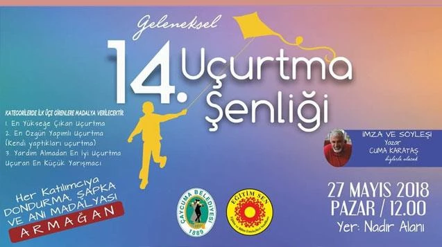 Çaycuma Belediyesi ve Eğitim Sen Çaycuma Temsilciliği'nin ortaklaşa yapacağı, Uçurtma Şenliği gökyüzünü renklendirecek. Bu yıl 14.Uçurtma Şenliği 27 Mayıs Pazar günü Çaycuma'nın Nadır mevkisinde gerçekleşecek.