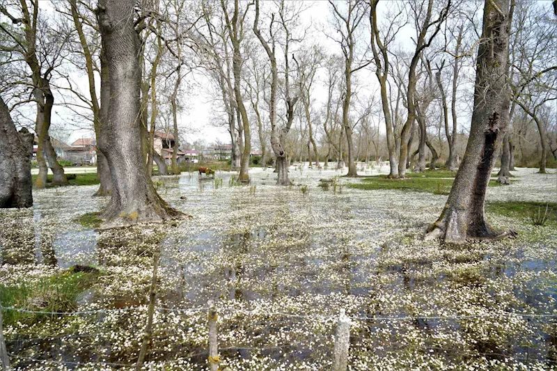 Türkiye’nin en önemli sulak alanlarından biri olan Kızılırmak Deltası Kuş Cenneti’nde açan su papatyaları, ziyaretçilerine eşsiz bir manzara sunuyor.